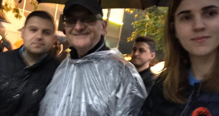 Ai është shfaqur në protestë i veshur me një mushama kundër shiut dhe i shoqëruar me ish-deputetët Endrit Brahimllari dhe Floida Kërpaçi.
