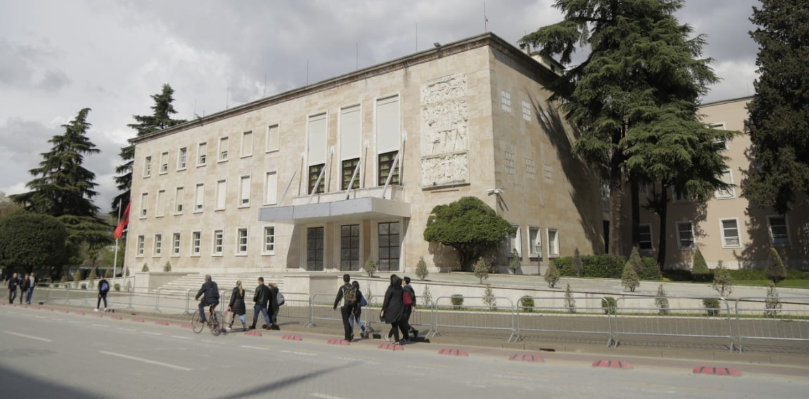Siç shihet edhe nga fotot, policia ka vendosur kangjella rrethuese në perimetrin e godinës, ndërsa rrjeta teli janë vendosur dhe përqark Kryeministrisë, lulishteve ngjitur, por dhe piramidës.