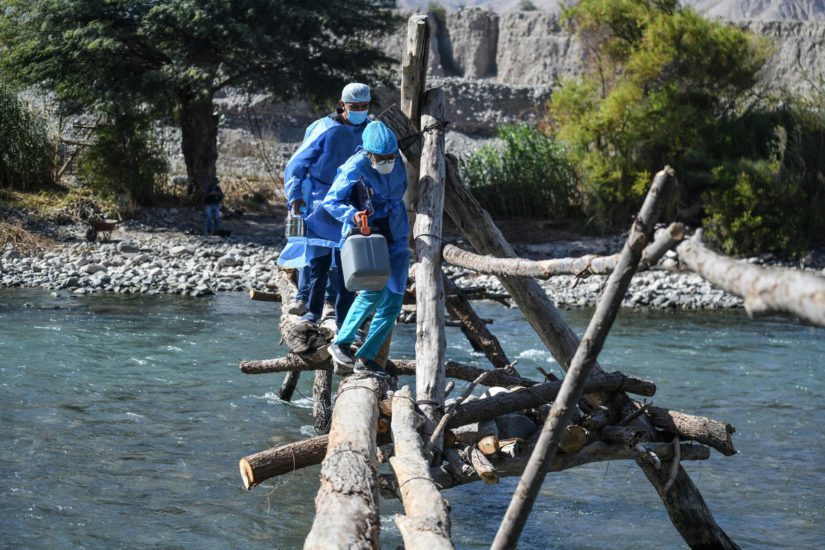 Mjekët duke kaluar lumin për të vaksinuar qytetarët, Peru