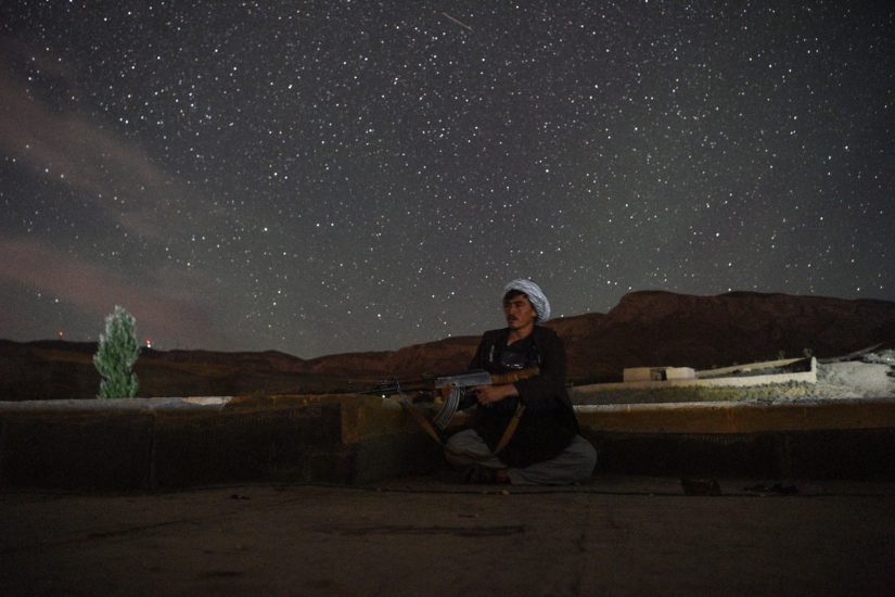 Një ushtar afgan duke vrojtuar për forcat talibane në Afganistan