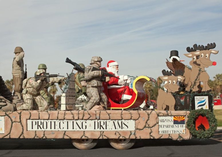 Një Santa Claus i fryrë u ngrit në katër kate mbi një pemë të Krishtlindjes, duke u valëvitur nga flladi dhe duke tërhequr vëmendjen e Jesse Rieser ndërsa ai udhëtonte me makinë nëpër Phoenix në 2009.