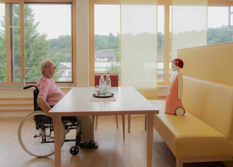 Waltraud bisedon me Emmën, një robot social që njeh fytyrat dhe kujton bisedat e kaluara. Edhe pse skeptike në fillim, Waltraud thotë se me kalimin e kohës ndihej e lidhur me Emmën.