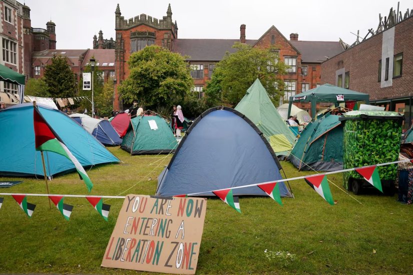 Në Universitetin e Mançesterit, më shumë se 100 studentë u mblodhën në të ashtuquajturin Kampin e Rezistencës Palestineze, në Brunsëick Park, për të kërkuar që qendra e arsimit të lartë të ndërpresë lidhjet e saj me kompanitë e armëve si BAE Systems dhe me Universitetin e Tel Avivit.