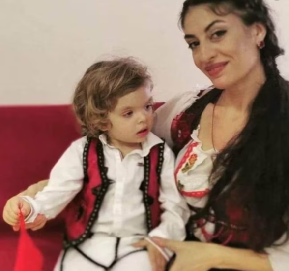 Nelli Syupyur me djalin e saj me rroba kombëtare shqiptare.