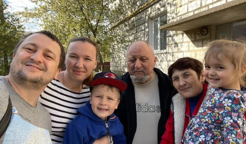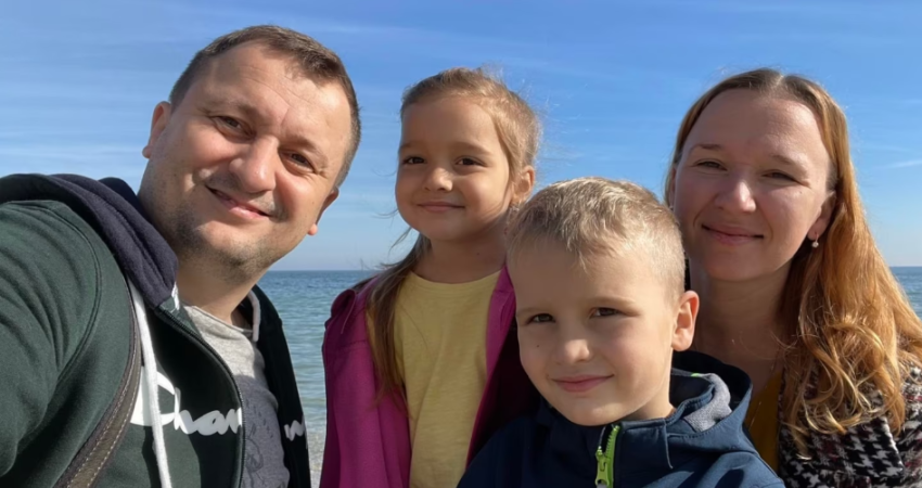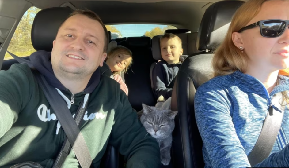 Maxim Kirchev me familjen e tij pasi u largua nga Kiev në fillim të luftës.