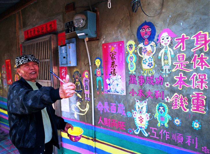 Të gjithë u larguan përveç Huang, një gjysh 86 vjeçar i cili mori penelin dhe filloi të pikturonte mbi çdo gjë. Ai e shpëtoi fshatin, e ktheu në një vepër arti dhe tani njerëz nga e gjithë bota e vizitojnë dhe bëjnë foto.