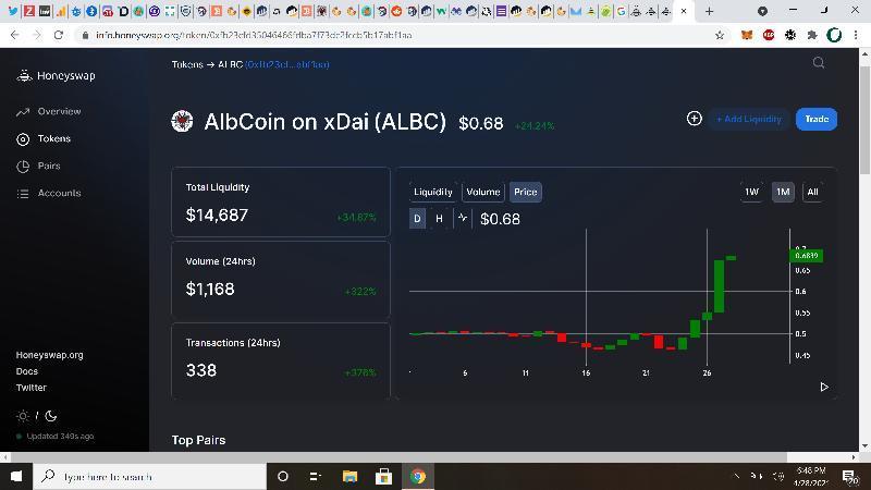 Sipas statistikave, gjatë dy ditëve të 24 dhe 25 prillit, në kriptomonedhën shqiptare u kryen 1150 transaksione dhe vlera totale e monedhës në treg arriti në 640 mijë dollarë nga 500 mijë që ishte rreth një muaj më parë. Vlera e monedhës nga 0.50$ arriti në 0.71$, me një rritje prej 29.3%.