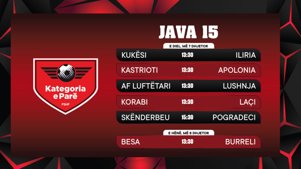 Nga Gazeta Si – Nga ora 13:30 e të dielës e deri në orën 21:00 të së hënës, futbolli shqiptar zbret në fushë për raundin e 15 në Kategorinë Superiore dhe atë të Parë. Janë inferiorët që ngrenë siparin me 4 ndeshje: