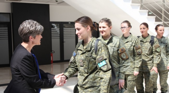 Një mendësi që ajo e theu kur ishte vetëm njëzet vjeç dhe u betua si luftëtare në Ushtrinë Çlirimtare të Kosovës. Tanimë, me një shtet të pavarur prej dhjetë vitesh, grave si ajo, ashtu si edhe burrave, u mbetet ta ruajnë dhe ta sigurojnë shtetin e tyre, për të cilin dy dekada më herët shumë derdhën gjakun për ta çliruar nga shtypja e ushtrisë jugosllave.
