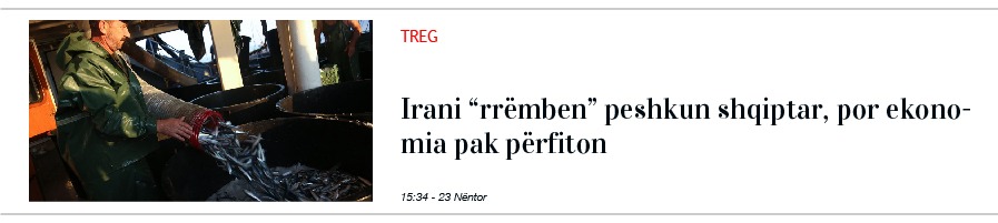 Rasti u shfaq kur në një lajm i kohëve të fundit, e konsultuar me të dhënat zyrtare nga INSTAT, Gazetasi.al shkruajti se Irani është vendi ku Shqipëria eksporton më shumë peshk, këto 10 vitet e fundit. Vetëm për vitin 2020, pothuajse 450 milionë lekë peshk nga Shqipëria u eksportuan drejt këtij vendi.
