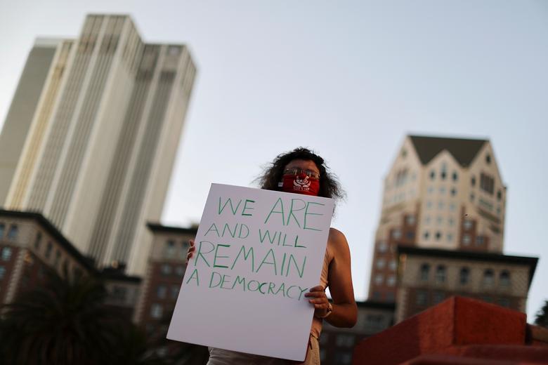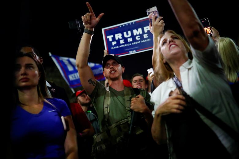 Një mbështetës i Donald Trump duke protestuar për rezultatet e hershme të zgjedhjeve presidenciale