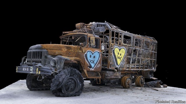 Ndërsa ushtarët mbrojnë pavarësinë e Ukrainës në vijën e frontit, skanimet dixhitale janë akte rezistence të vetë profesionistëve krijues, një mjet për të rrëmbyer trashëgiminë e tyre unike kulturore nga kontrolli i Rusisë. Por nuk ka të bëjë vetëm me ruajtjen. Regjistrimi i skenave të kohës së luftës po bëhet duke pasur parasysh ekspozitat apo filmat e ardhshëm. “Dokumentacioni i luftës ka rëndësi në 3d sepse rinia jonë tashmë po konsumon lloje të tjera përmbajtjesh: videolojëra, realitet virtual”, shpjegon zonja Boitsova. Në vitet në vijim, thotë ajo, ekspozitat rreth luftës “duhet të kenë përvoja që do të jenë të përshtatshme për të ardhmen – holograme ndërvepruese, projekte arkitekturore, VR”. Rindërtimet tredimensionale, qofshin ato të një shtëpie të shkatërruar apo të një makine të djegur, kanë potencialin të jenë më emocionuese se fotografia tradicionale e luftës, shton ajo.