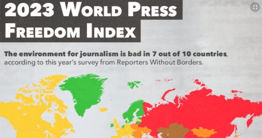 Indeksi Botëror i Lirisë së Shtypit i organizatës Gazetarët Pa Kufij, i bërë publik të mërkurën në Ditën Botërore të Lirisë së Shtypit, arrin në përfundimin se situata është “shumë e keqe” në 31 vende, “e keqe” në 42 vende, “problematike” në 55 dhe e “mirë” ose “mjaft mirë” në 52 vende. Kjo do të thotë se mjedisi për gazetarinë është i keq në shtatë nga dhjetë vende, dhe i kënaqshëm vetëm në tre nga dhjetë vende.