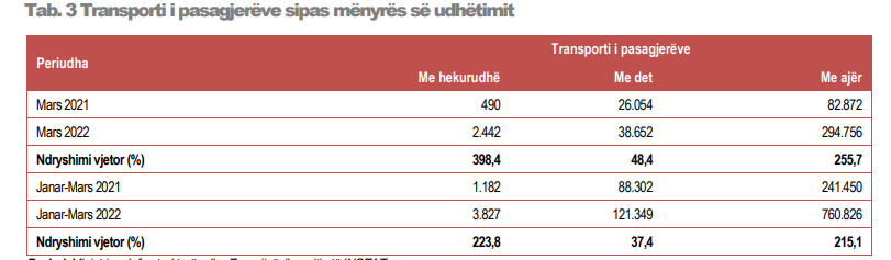 Rritje ka pësuar dhe transporti hekurudhor i pasagjerëve, ku nga 490 gjatë marsit 2021, këtë vit kanë udhëtuar 2.442.