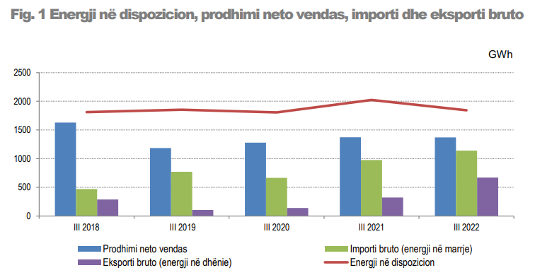 Importi i energjisë për këtë periudhë u rrit me 17%, nga 975 GWh në 1.142 GWh, një vit më parë. Ndërkohë edhe eksporti u dyfishua po ashtu, nga 323 GWh një vit më parë, në 670 GWh. Gjithsesi Instat raporton se energjia në dispozicion është ulur me 9% për tremujorin e tretë të vitit.