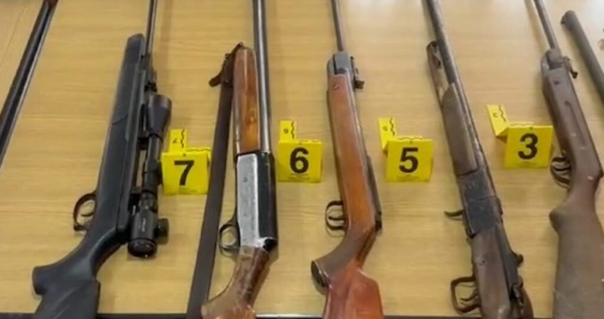 “Në kuadër të këtij operacioni, në fshatin Gjergjan, në banesat e shtetasve A. M., 65 vjeç dhe B. M., 57 vjeç, shërbimet e Policisë gjetën dhe sekuestruan në cilësinë e provës materiale: 1 armë zjarri kallashnikov me 2 karikatorë me 80 fishekë; 1 armë gjahu gjysmë automatike; 1 armë zjarri pushkë (trofe); 2 pushkë pneumatike; 1 armë pneumatike me dylbi të montuar; 1 palë dylbi; 1 mjet prerës (thikë) i kombinuar me përforcues grushti. Në vijim të veprimeve procedurale për këto raste, u arrestuan në flagrancë shtetasi B. M., 57 vjeç, dhe u procedua në gjendje të lirë, për arsye shëndetësore, vëllai i tij, shtetasi A. M., 65 vjeç”, njoftoi policia.