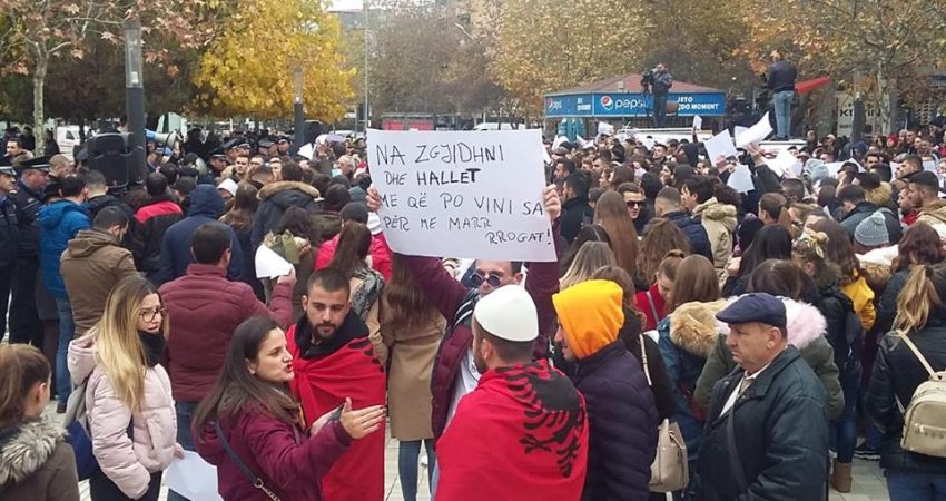 Ndërsa mes fjalëve këndonin “Shqipëri mjerane, rroga afrikane, çmime europiane, raca arjane, standarde talebane, qeveri hajvane.”