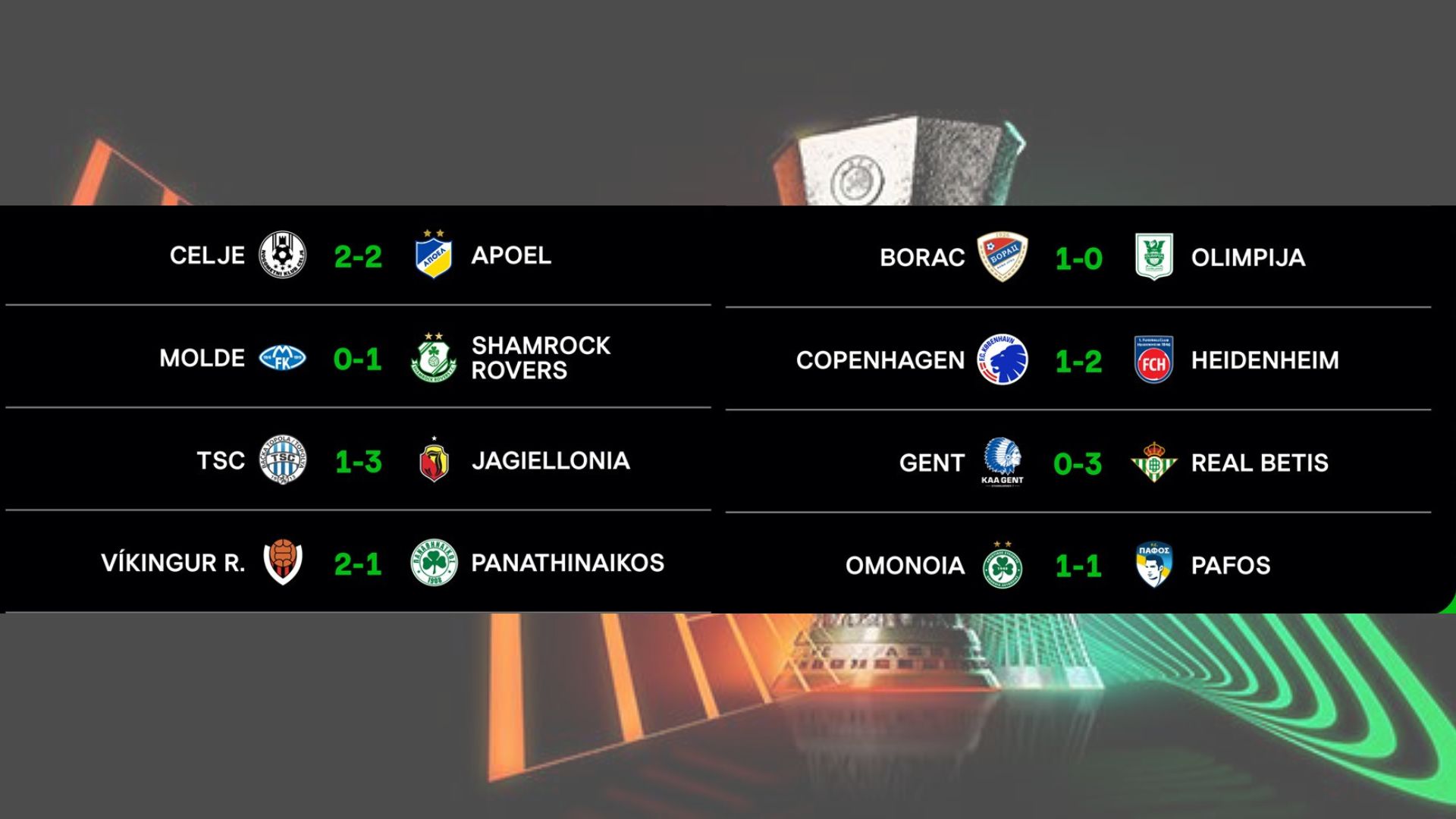 Tetë vendet e mbetura për raundin e 16 më të mirëve, do të përcaktohen nga ndeshjet e kthimit play-off të fazës knockout në UEFA Conference League. Real Betis, Shamrock Rovers dhe Heidenheim janë më të favorizuara pas rezultateve që arritën një javë më parë. Víkingur R. është skuadra e parë islandeze që luan në një tur me eleminim direkt në kupat e Evropës. Edhe pas ndeshjes së parë, Copenhagen vazhdon të mos ketë asnjë fitore në 15 përballje ndaj kundërshtarëve nga Gjermania (5 barazime e 10 humbje). Shamrock Rovers arriti fitoren e parë ndaj Molde pas dy humbjeve në takimet e sezonit 2022/23 në Conference League. Braziliani Antony shënoi në të parën ndeshje në Conference League në fitoren e Real Betis 3-0 ndaj Gent.