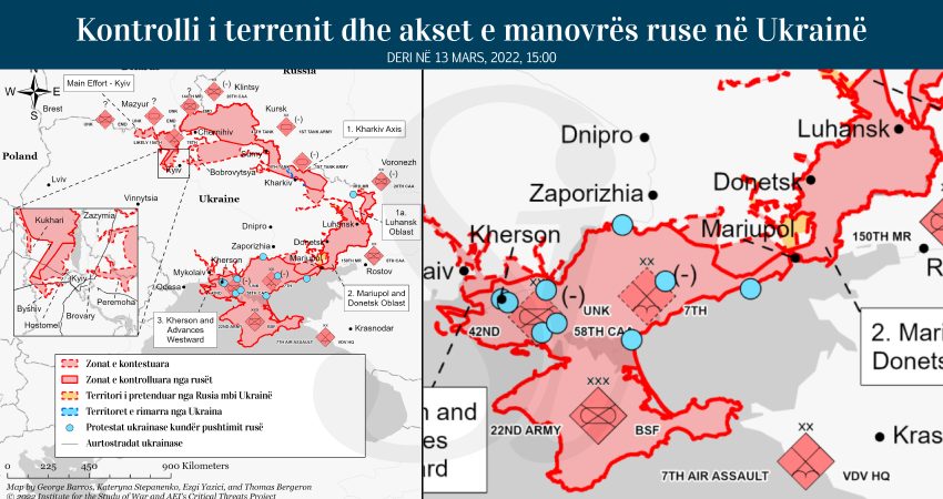 - Forcat ruse dhe ato prokurë kapën me sukses disa qytete në veri të Mariupolit në rajonin e Donetsk më 13 mars, i vetmi aksion sulmues tokësor i ditës.