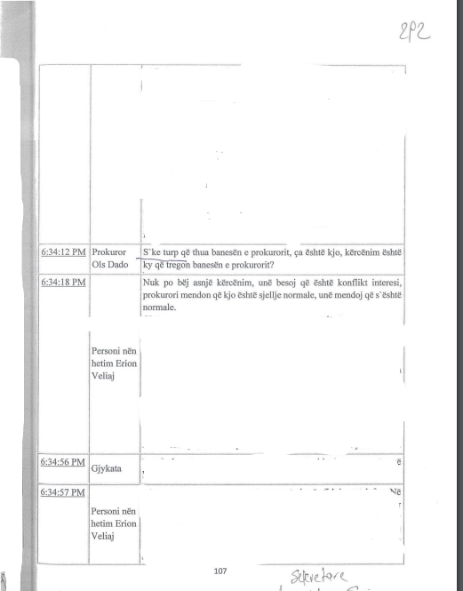 Gazeta Panorama ka publikuar një dokument që pretendohet se është transkripti i zbardhur në seancë, i cili siç shihet nga foto, është i ndryshëm me atë që ka publikuar më herët Veliaj.