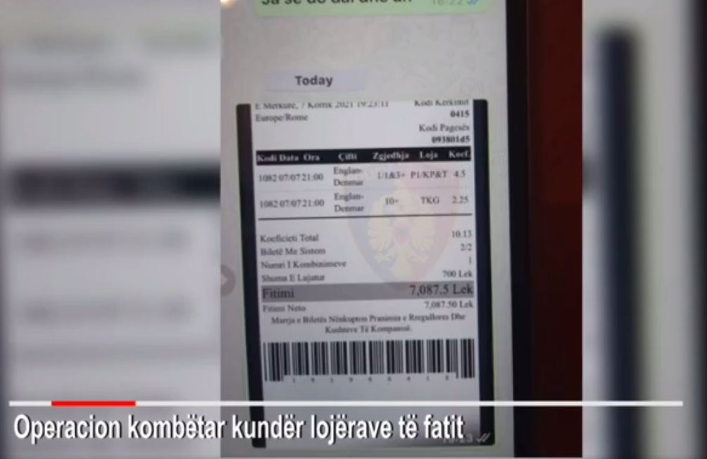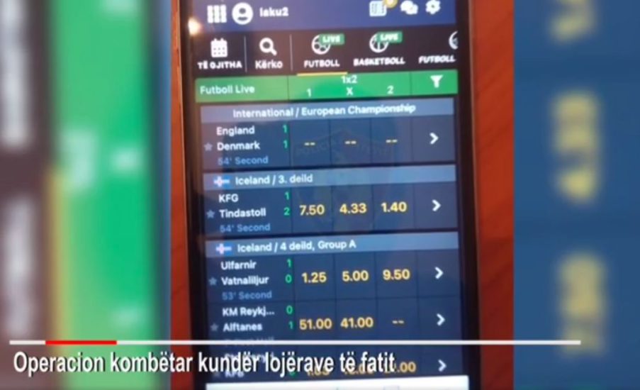 Në një operacion kombëtar për goditjen e lojërave të fatit, ndërsa luhej gjysmëfinalja e dytë e Europianit Danimarkë-Angli, janë arrestuar 35 persona.