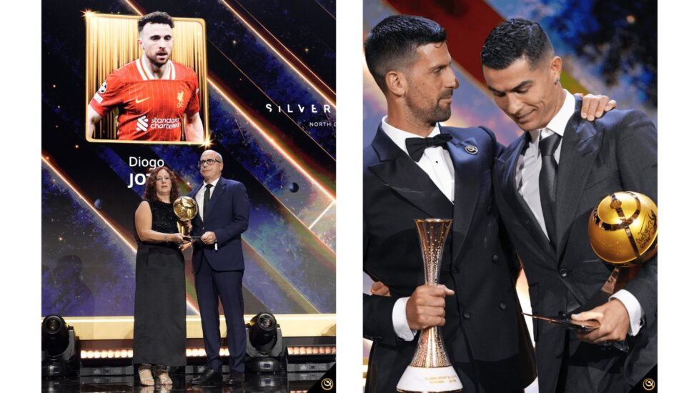 Në një atmosferë të ngarkuar emocionalisht, prindërit e André dhe Diogo Jota-s morën cmimin, duke krijuar një nga skenat më prekëse të mbrëmjes.