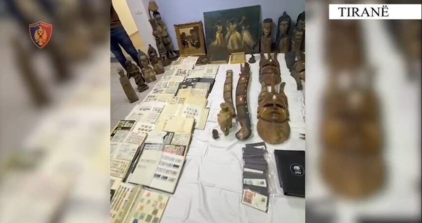 Pas kontrolleve, policia gjeti dhe sekuestroi 31 punime druri të gdhendura me motive të ndryshme; 3 skulptura në formë dhëmbi elefanti; 6 piktura të autorëve të huaj; 411 albume me pulla poste të shteteve të ndryshme të botës; një procesverbal origjinal francez, i vitit 1925.