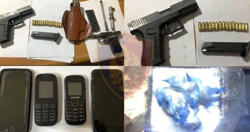 Gjatë kontrollit të ushtruar në banesën e 54-vjeçarit S.S., policia gjeti dy armë zjarri pistoletë, një sasi fishkësh dhe një sasi lëndë narkotike kokainë e ndarë në doza.