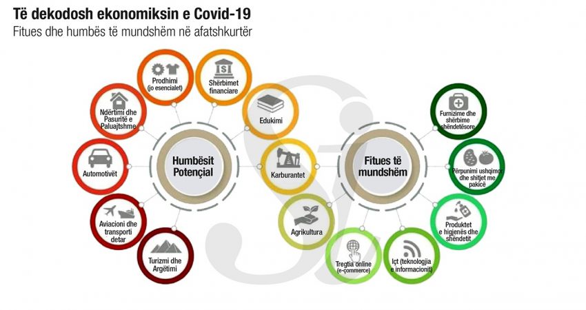 Sektorët që priten të vuajnë më tepër nga efektet e pandemisë globale të Covid-19 në kohe afashkurtër janë Edukimi, Turizmi, Prodhimi (jo thelbësoret), automotivët, etj.