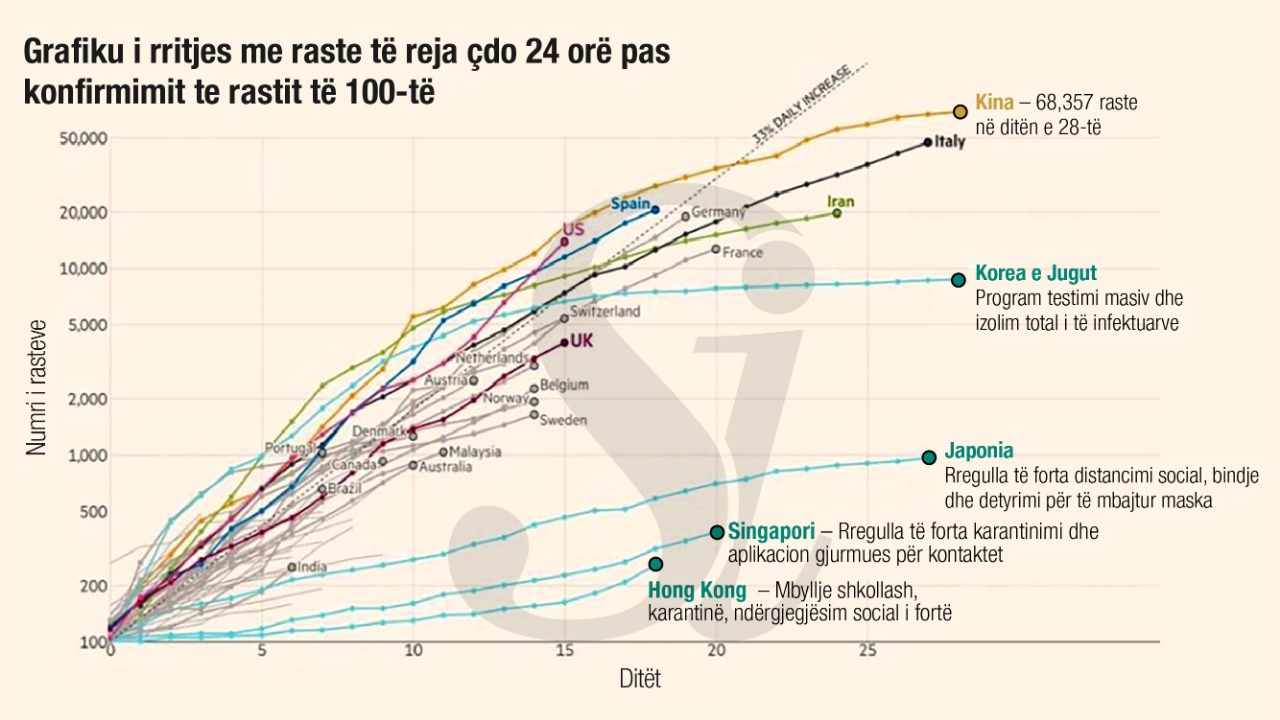 SHBA ka një rritje të frikshme të kurbës së të infektuarve në krahasim me Kinë, Italia, Korenë e Jugut dhe vendet e tjera pas konfirmimit të pacientit numër 100.