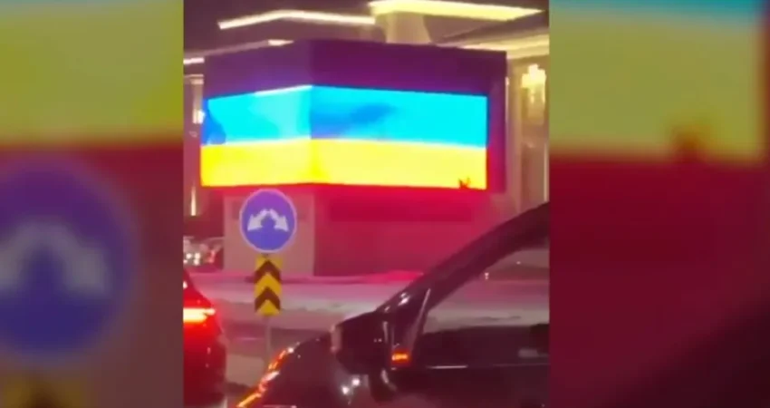 Anton Gerashchenko, një ish-këshilltar i ministrit të punëve të brendshme të Ukrainës, postoi një video të flamurit të Ukrainës në billbordin dixhital në X, i njohur më parë si Twitter.