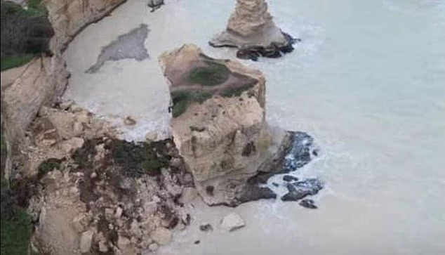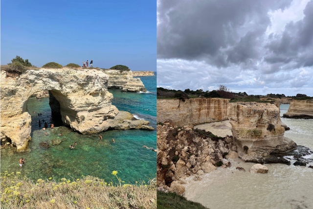 Harku shkëmbor i famshëm i të dashuruarve në Puglia, Itali, u shemb pas stuhive të forta dhe shirave të rrëmbyeshëm që përfshinë Italinë jugore.