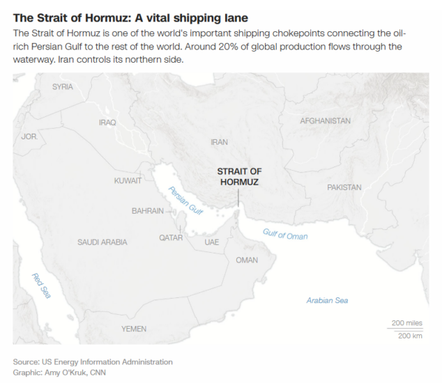Irani ka paralajmëruar se një luftë nuk do të kufizohej në rajon, por do të trondiste ekonominë botërore. Një nga mjetet kryesore është Ngushtica e Hormuzit, ku kalon mbi një e pesta e naftës botërore dhe sasi të mëdha gazi natyror të lëngshëm. Teherani ka kërcënuar ta mbyllë atë në rast sulmi.