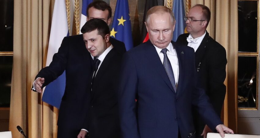 Ishte 9 dhjetori 2019 dhe Putin e Zelenski u takuan në Paris për të diskutuar pretendimet ruse dhe lëshimet territoriale.