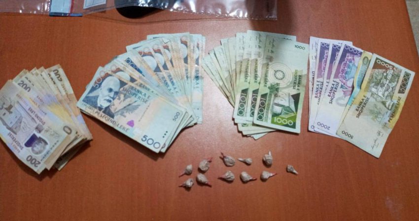 Gjatë kontrollit fizik të ushtruar ndaj këtij shtetasi, shërbimet e Policisë kanë gjetur dhe sekuestruar në cilësinë e provës materiale 11 doza me lëndë narkotike të dyshuar heroinë dhe 52.000 lekë.