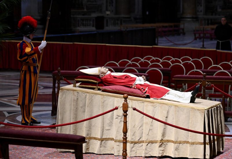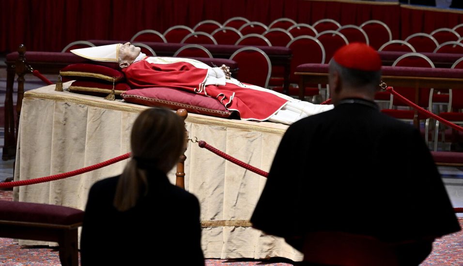 Gazeta Si – Trupi i Benediktit XVI, Papës Emeritus, i cili më 31 dhjetor, është ekspozuar që nga mëngjesi i kësaj të hëne në sheshin Shën Pjetër.