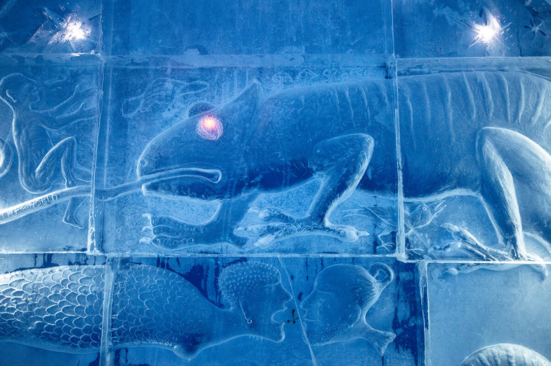 Procesi i ndërtimit filloi në pranverë kur blloqet e akullit u morën nga lumi Torne dhe u ruajtën në një magazinë akulli. Më vonë, artistët skalitën krijimet e tyre duke përdorur 500 tonë akull dhe 10 pishina olimpike me borë. Gjithashtu, rreth 200 kristale akulli të punuara me dorë u përdorën për të krijuar një llambadar kristali.