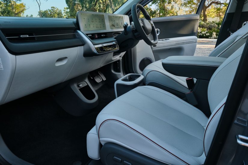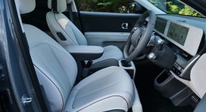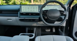 Brendësia është po aq intriguese sa pjesa e jashtme. Ndryshe nga modelet hibride, plug-in hibride dhe EVs Ioniq, kabina e Ioniq 5 është ndryshe nga cdo gjë tjetër në gamën e Hyundai.