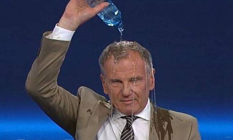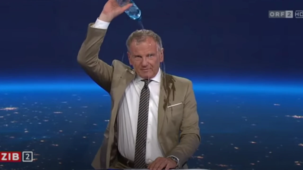 Një ngjarje sa e çuditshme aq edhe qesharake ka ndodhur gjatë transmetimit të një edicioni lajmesh live, kur prezantuesi Armin Wolf nuk ka duruar dot vapën e madhe në studio, ka marrë një bidon të vogël me ujë që mbante mbi tavolinë, dhe e ka zbrazur atë mbi kokën e tij.