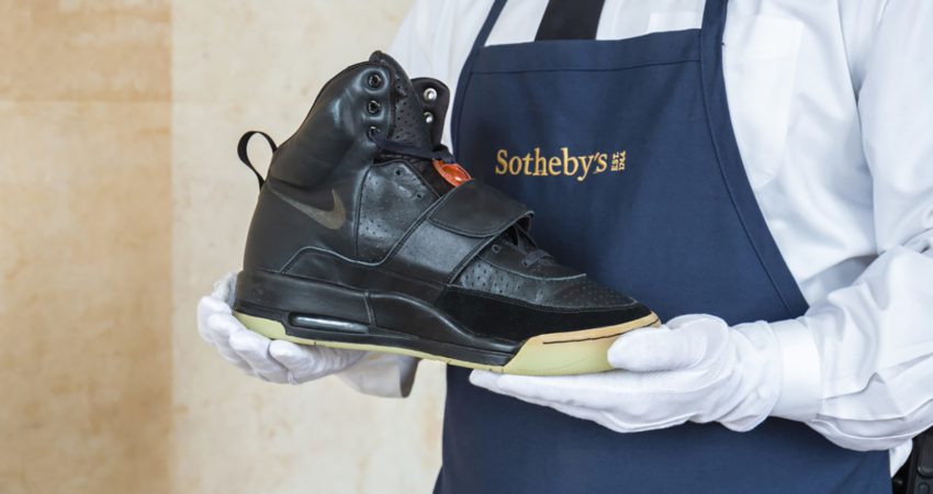 Një palë atlete që reperi Kanye West i veshi në vitin 2008 në 50 vjetorin e çmimeve Grammy, janë shitur në ankand për një shifër rekord.