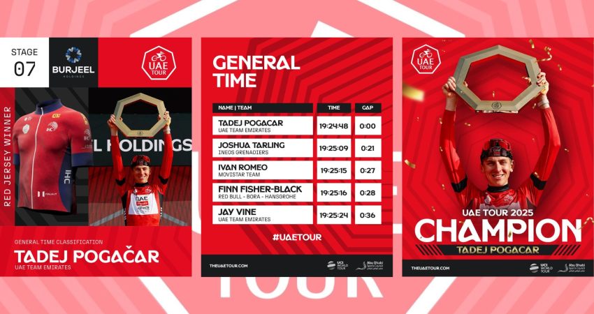 Çiklisti slloven, Tadej Pogacar fitoi edicionin e 7 në “United Arab Emirates Tour” në çiklizëm pas sulmit në 7.7 km fundit nga Jebel Hafeet. Vend ku kishte zyrtarizuar fitoren edhe në vitet 2020, 2021 dhe 2022. Kampioni i Botës la shenjën e tij në një javë pothuajse perfekte në shpejtësi maksimale (mesatarisht 47.129 km/h). Peloton-i ishte sërish i pafuqishëm për ta ndalur duke prishur balancën mes pretendentëve. Felix Gall dhe fituesi i një viti më parë, Lennert Van Eetvelt mbetën në grupin e dytë pa mundur të rivendosnin kontaktin me 42 çiklistët e shkeputur.