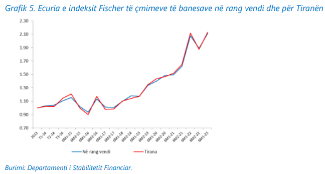 Nga Gazeta ‘SI’ – Indeksi Fischer, vrojtimi i Bankës së Shqipërisë për tregun imobiliar, raporton një rritje me 11.6% të këtij tregu, gjatë gjashtëmujorit të parë 2023, krahasuar më atë 2022.