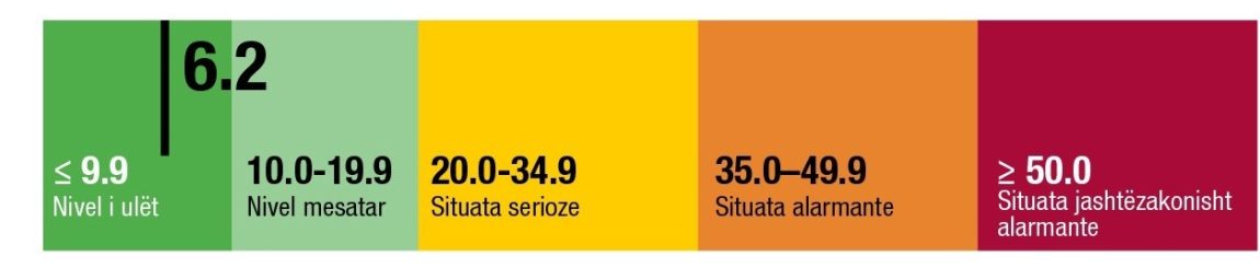 “Me notën 6.2, Shqipëria ka një nivel të ulët urie”, thuhet në raport i cili thekson se sa më afër nivelit zero, aq më pozitive është situata.