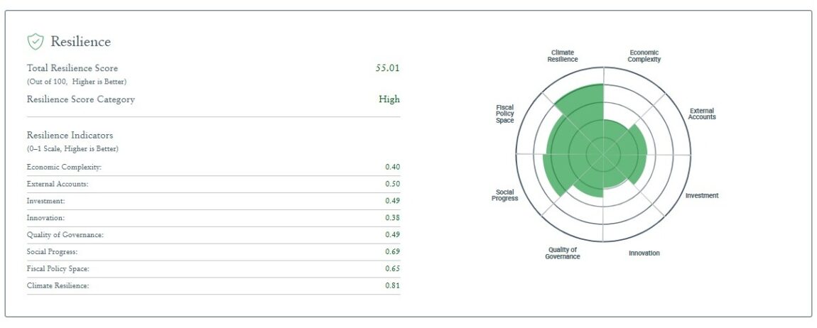 Indeksi vlerëson shtetet më të sigurta për investime, bazuar në rrezikun e mat ekspozimit ndaj një lufte, ndryshimeve klimatike apo problemet e brendshme politike e ligjore. Treguesi i elasticiteti mat aftësinë e një shteti për t’u rikuperuar dhe përshtatur me ndryshimet drastike që përballet.