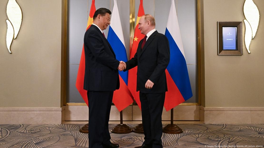 Edhe Kina prej kohësh nga ana ekonomike faktikisht është në anë të Rusisë, duke e përdorur si treg shitjeje por Rusia është edhe një furnizuese me lëndë të parë me rëndësi për Kinën. Pekini ka abstenuar gjithmonë në votimet në Këshillin e Sigurimit. Në vend të kritikojë Rusinë për luftën, presidenti Jinping e priti në maj Putinin me nderime ushtarake. Kina megjithatë e ka ofruar veten si ndërmjetësuese. Më 24 shkurt 2023, përvjetorin e parë të luftës në Ukrainë, ky vend prezantoi një plan me 12 pika që paraqiste pozicionin kinez. Si pika kryesore ishin integriteti territorial, respektimi i së drejtës ndërkombëtare dhe mbrojtja e popullsisë civile, por edhe refuzimi i sanksioneve të njëanshme.