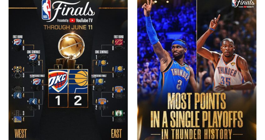 Në pritje të ndeshjes së 4 në Finalet e sezonit, Indiana Pacers kryeson 2-1 ndaj Oklahoma City Thunder që do të luajë sërish në transfertë ku i duhet të barazojë serinë për të mos rrezikuar humbjen e Finaleve pa histori. Për këtë i duhet një paraqitje bindëse e “SHGA” sic thërritet Shai Gilgeous-Alexandër. Lojtari më i Mirë i sezonit të rregullt u ndal nga Pacers në ndeshjen e tretë duke mos qënë në gjëndje t’ju afrohet 72 pikëve (36 për cdo ndeshje) të realizuara në dy takimet e para.
