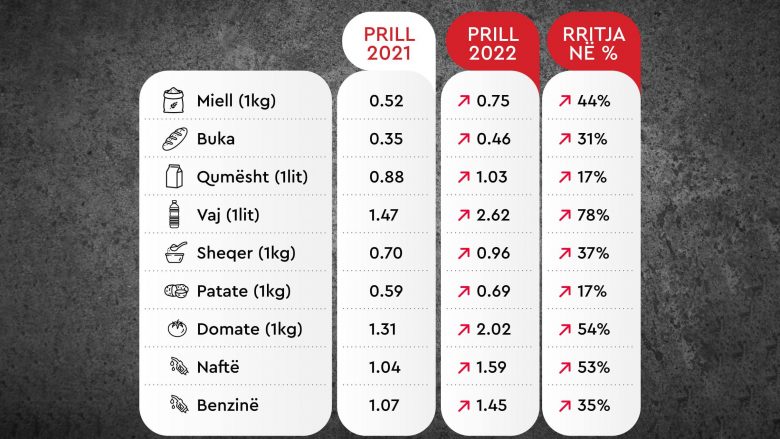 “Rritja rekord e çmimeve, për çdo muaj po vazhdon të bëhet më e papërballueshme për qytetarin. Inflacioni në muajin prill ka arritur në nivele alarmante prej 11.2%, më e larta deri më tani”.