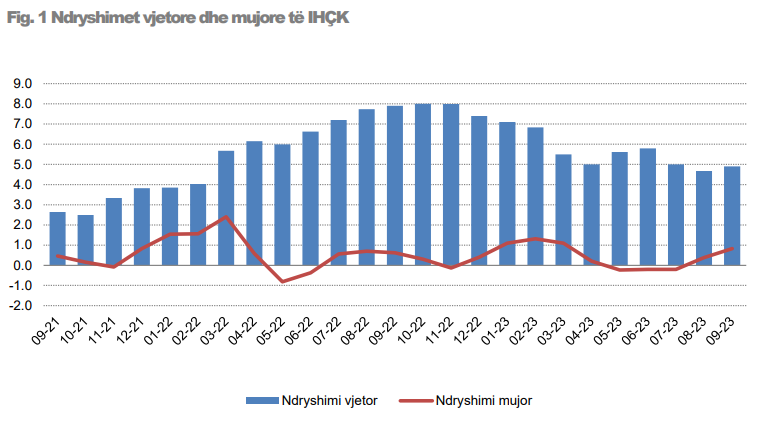 Vjeshta e 2023-shit, riktheu rritjet e inflacionit në vend, ndikuar pjesërisht nga faktorët sezonalë, por edhe nga një rritje e lehtë e çmimeve të naftës.