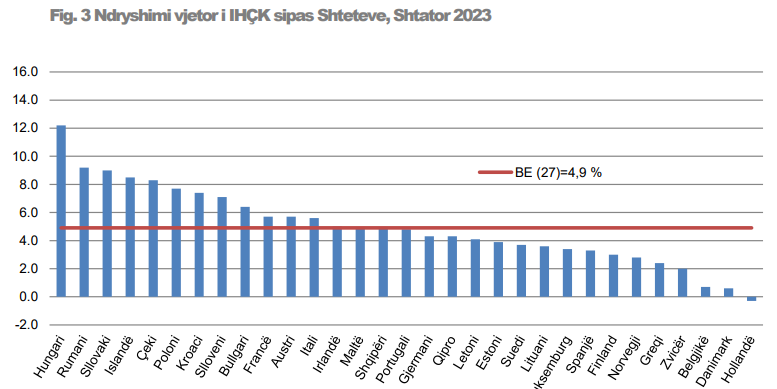 Inflacioni në Shqipëri, krahasuar me vendet e BE-së, nuk renditet më ndër vendet e fundit, por lë pas vende si Gjermania, Suedia, Finlanda etj. Mesatarja e inflacionit në BE për shtatorin është 4.9%.