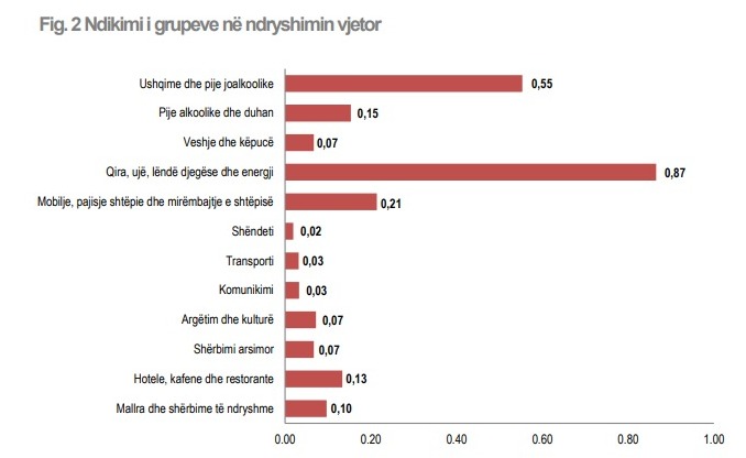 Sipas INSTAT, faktori kryesor i inflacionit ka rezultuar qiraja, uji dhe energjia, me kontribut 0.9 p.p., ndjekur nga grupi i ushqimeve dhe pijeve joalkoolike me 0.55 p.p.